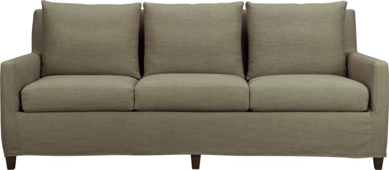 For the past month or so, I have had some major angst over one major purchase...the sofa. We had some criteria to fill, which I struggled with continually throughout the process: 1) A relatively small and narrow room that has to function as a dining area as well :: It must not be too large or dark because it will overwhelm the space 2) A dark furred dog that loves to snuggle on the sofa :: It must be easy to clean and hide daily grime well 3) A 6' tall husband who needs a place to put his feet up after long days :: It must have a seat that is at least 72" long (and deep enough for us to both lay on comfortably) 4) A wife (me) who wants the entry of the home to look good :: It must not be generic and/or ugly So after dragging the huz to shop after shop and looking at numerous retail websites, we finally (and I mean finally) settled on one. Meet Rachel...